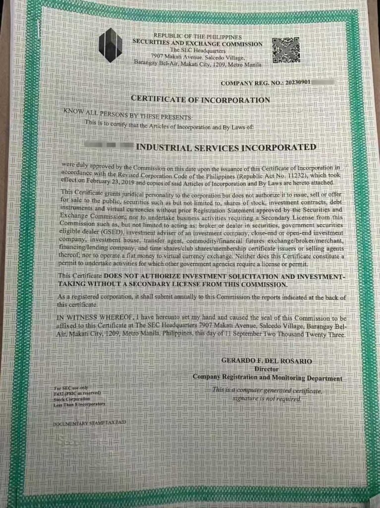 操作:向菲律宾SEC提交3个英文备选名称(后缀需含“Inc.”或“Corp.”),查重通过后预留名称。